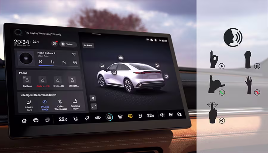 V kabíne vás privítajú minimalistické, estetické prvky z kvalitných materiálov a starostlivo prepracované detaily. Je to prostredie, ktoré zdôrazňuje pokoj. Rôzne technológie, ako napríklad stredová konzola a digitálny kokpit, sú integrované nerušivým spôsobom, aby umocnili váš zážitok bez rozptyľovania.